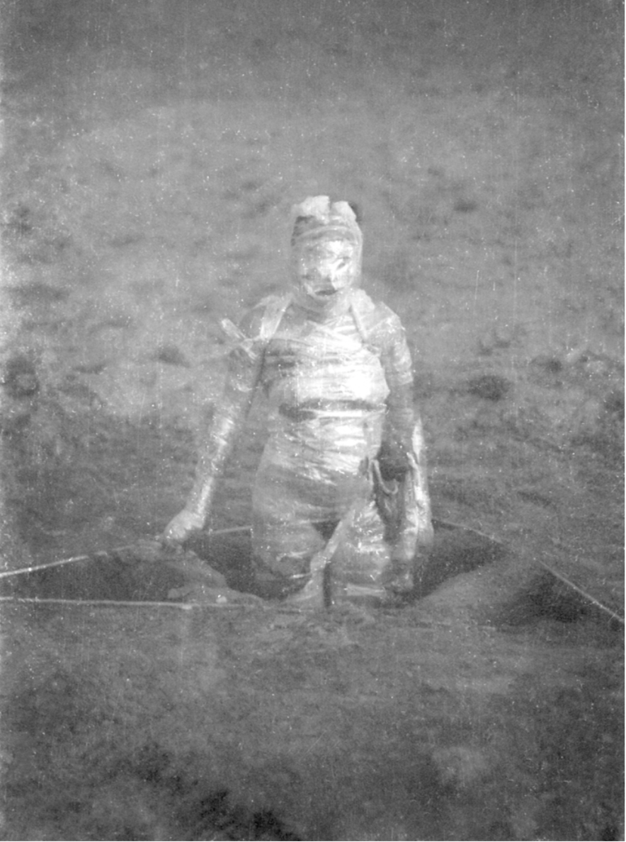 Maria Evelia Marmolejo, Anonymous 3, 1982. Performed on the polluted banks of the Cauca River, Valley Cauca, Colombia. Documentary photograph. Photo: Nelson Villegas. Courtesy of ArtNexus.