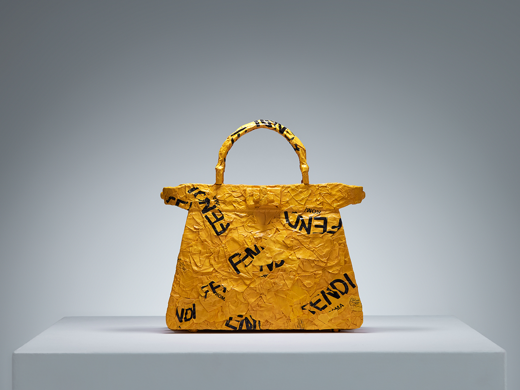 CHiNGLiSH WANG, CHiNGLiSH Brands (Fendi Peekaboo), Paper shopping bags and metal wire, 11 x 4.4 x 11.5 in. Courtesy of the curator.